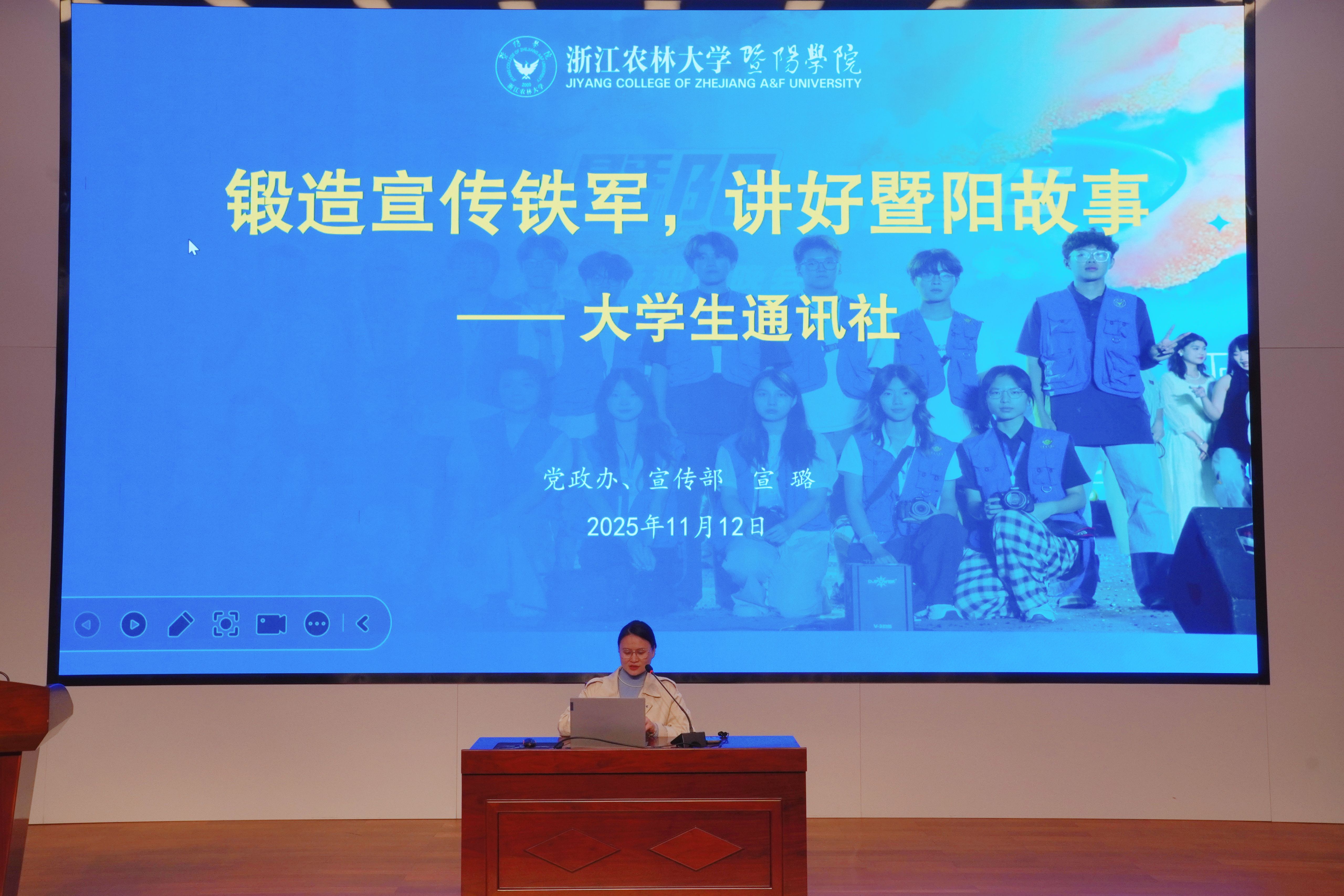 金风送爽桂花香,丹枫尽染秋意浓。11月12日晚,浙江农林大学暨阳学院第七届大学生通讯社大会在智能报告厅举行。