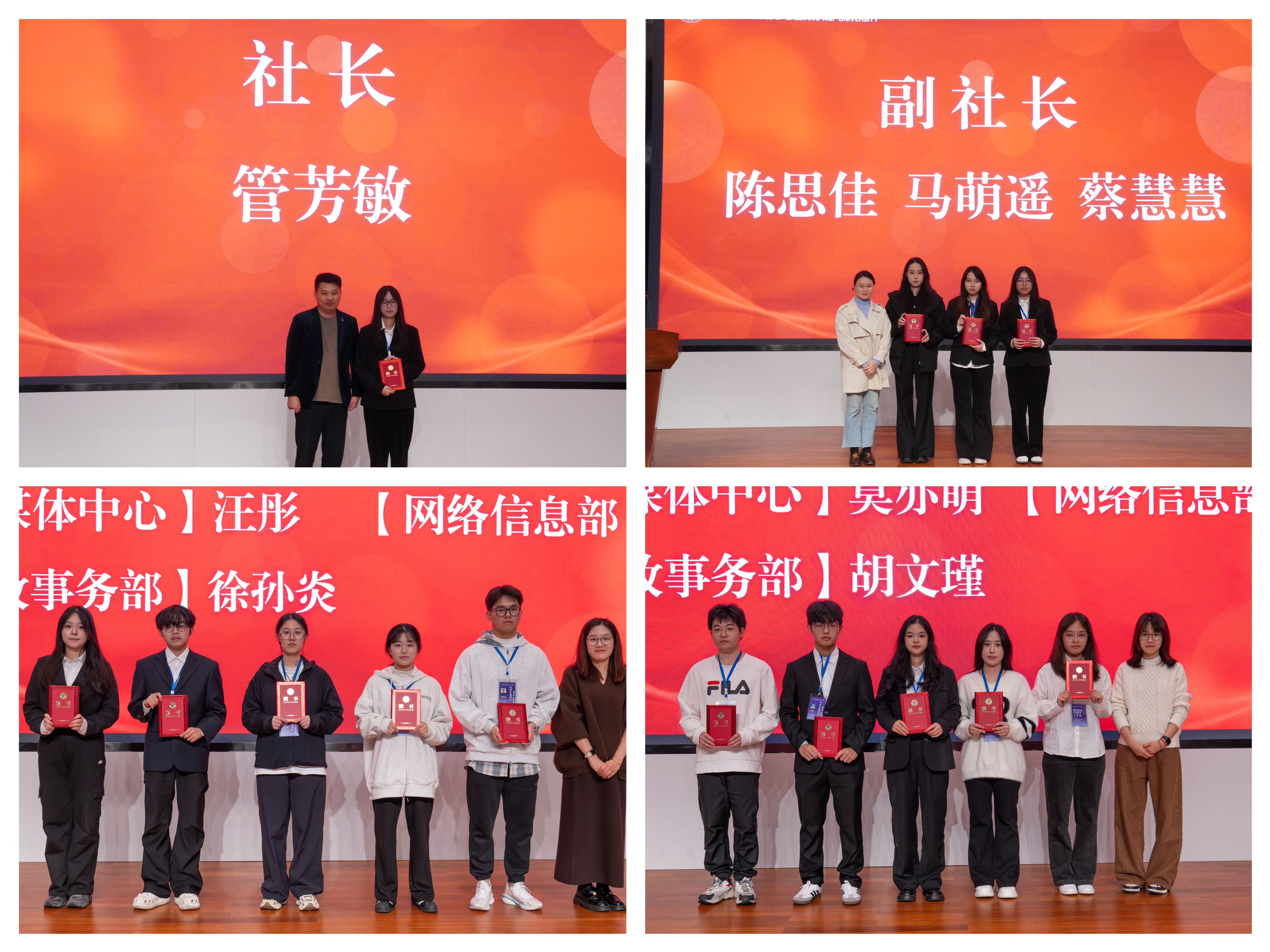 党政办、宣传部负责人,党政办、宣传部教师代表依次为2025届社长团、部长团及副部长代表颁发聘书。