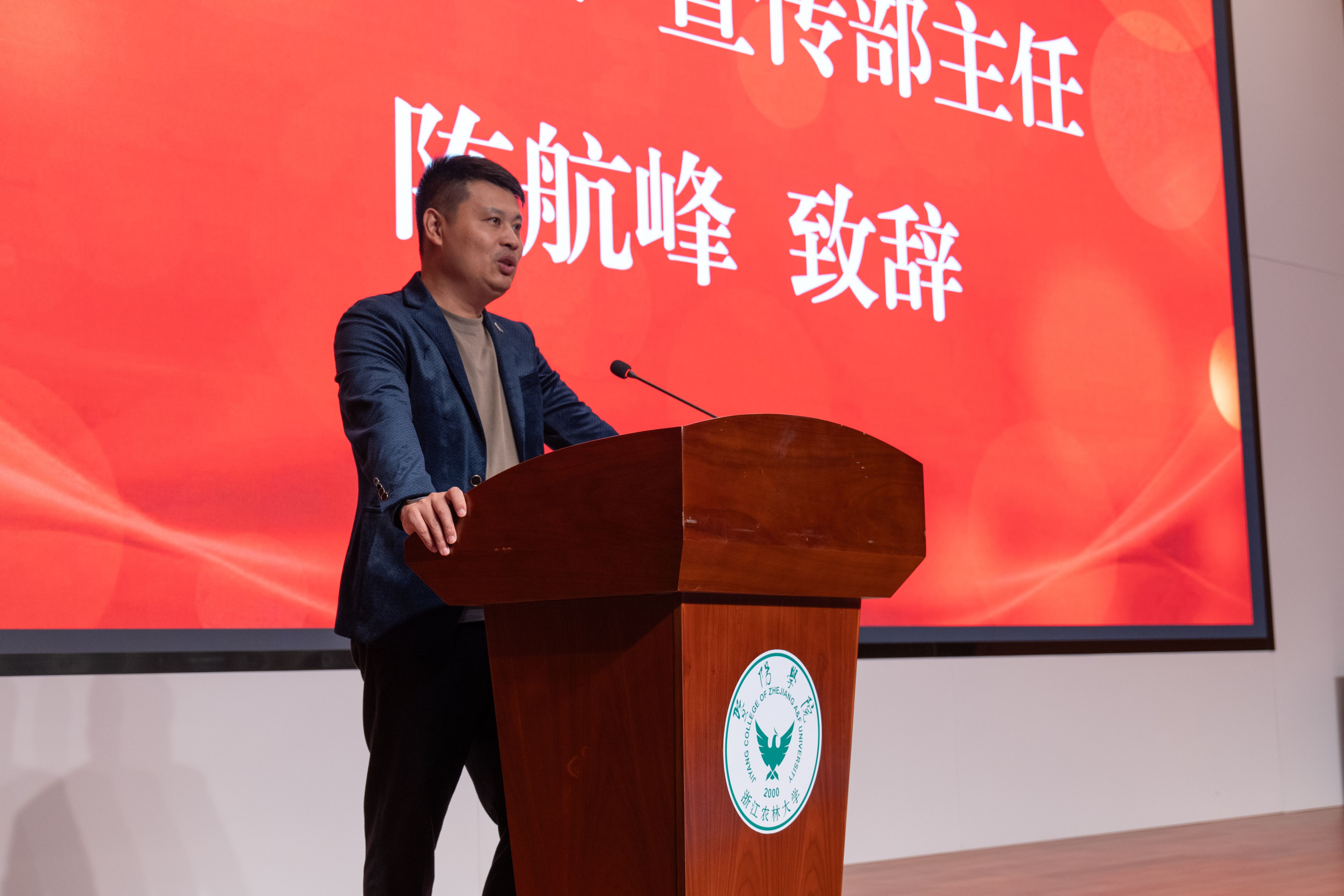 大会在聘任仪式中拉开帷幕。党政办、宣传部主任陈航峰为大学生通讯社各部门指导教师颁发聘书。